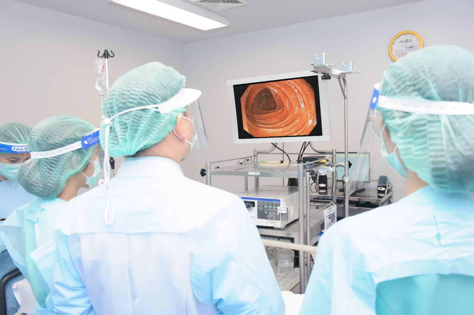 “ที่ศูนย์ทางเดินอาหารและตับ รพ.นครธน เรามีทีมแพทย์สหสาขาวิชาชีพ โดยเฉพาะ วิสัญญีแพทย์ ประจำศูนย์ฯ ที่จะให้ยานอนหลับคนไข้ระหว่างการตรวจส่องกล้อง เพราะการตรวจลำไส้ใหญ่และกระเพาะอาหาร ถ้าคนไข้ยังรู้สึกตัวอยู่อาจจะรู้สึกไม่สุขสบาย ในบางโรคที่ซับซ้อนขึ้น อย่าง โรคมะเร็งลำไส้ใหญ่ ถ้าตรวจส่องกล้องไปเจอมะเร็ง ก็ต้องประเมินระยะของโรค บางรายต้องผ่าตัด และใช้เคมีบำบัด ต้องรักษาร่วมกับแพทย์สาขาอื่นๆ อย่างเช่น รังสีแพทย์ ศัลยแพทย์ และอายุรแพทย์ด้านมะเร็งวิทยา มาร่วมดูแล เพื่อการรักษาโรคได้ครบถ้วนที่สุด” นพ.สมบุญ แพทย์ประจำศูนย์ฯ กล่าว