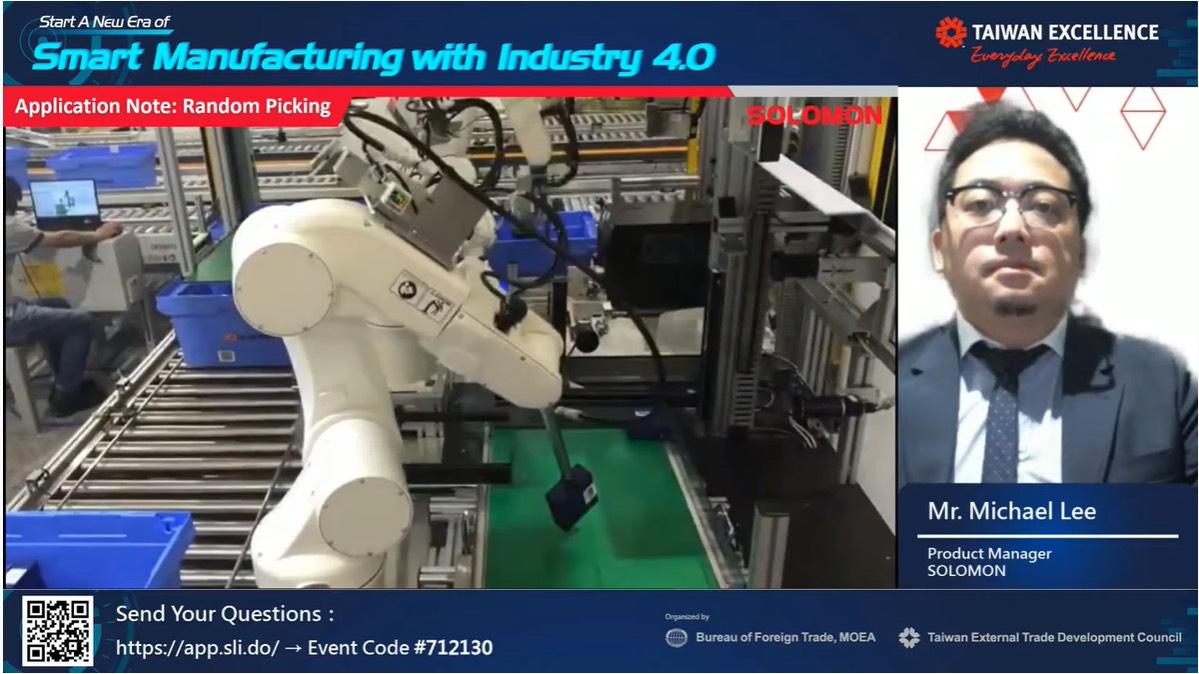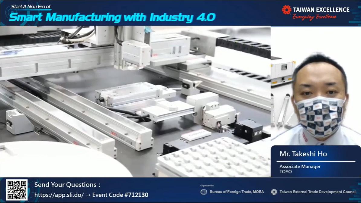 ในงานสัมมนาออนไลน์ บริษัทผู้ผลิตชั้นนำทั้ง 5 บริษัท ได้เปิดตัวผลิตภัณฑ์ใหม่ พร้อมนำเสนอนวัตกรรมและโซลูชันการผลิตอัจฉริยะล้ำสมัยที่สุด คุณทาเคชี โฮ รองผู้จัดการ บริษัท โตโย ออโตเมชั่น จำกัด ได้นำเสนอกระบอกสูบไฟฟ้าที่มีประสิทธิภาพสูงและมีการใช้งานที่หลากหลาย พร้อมเผยเหตุผลทำไมผลิตภัณฑ์ของบริษัทจึงสามารถแทนที่กระบอกสูบแบบเดิมได้ ถัดมา คุณไมเคิล ลี ผู้จัดการฝ่ายผลิตภัณฑ์ บริษัท โซโลมอน เทคโนโลยี คอร์ปอเรชั่น ได้แสดงวิธีดำเนินการผลิตอัจฉริยะด้วยหุ่นยนต์ ระบบตรวจสอบคุณภาพของเครื่องจักร และการผสมผสานปัญญาประดิษฐ์โดยผ่านกรณีศึกษา