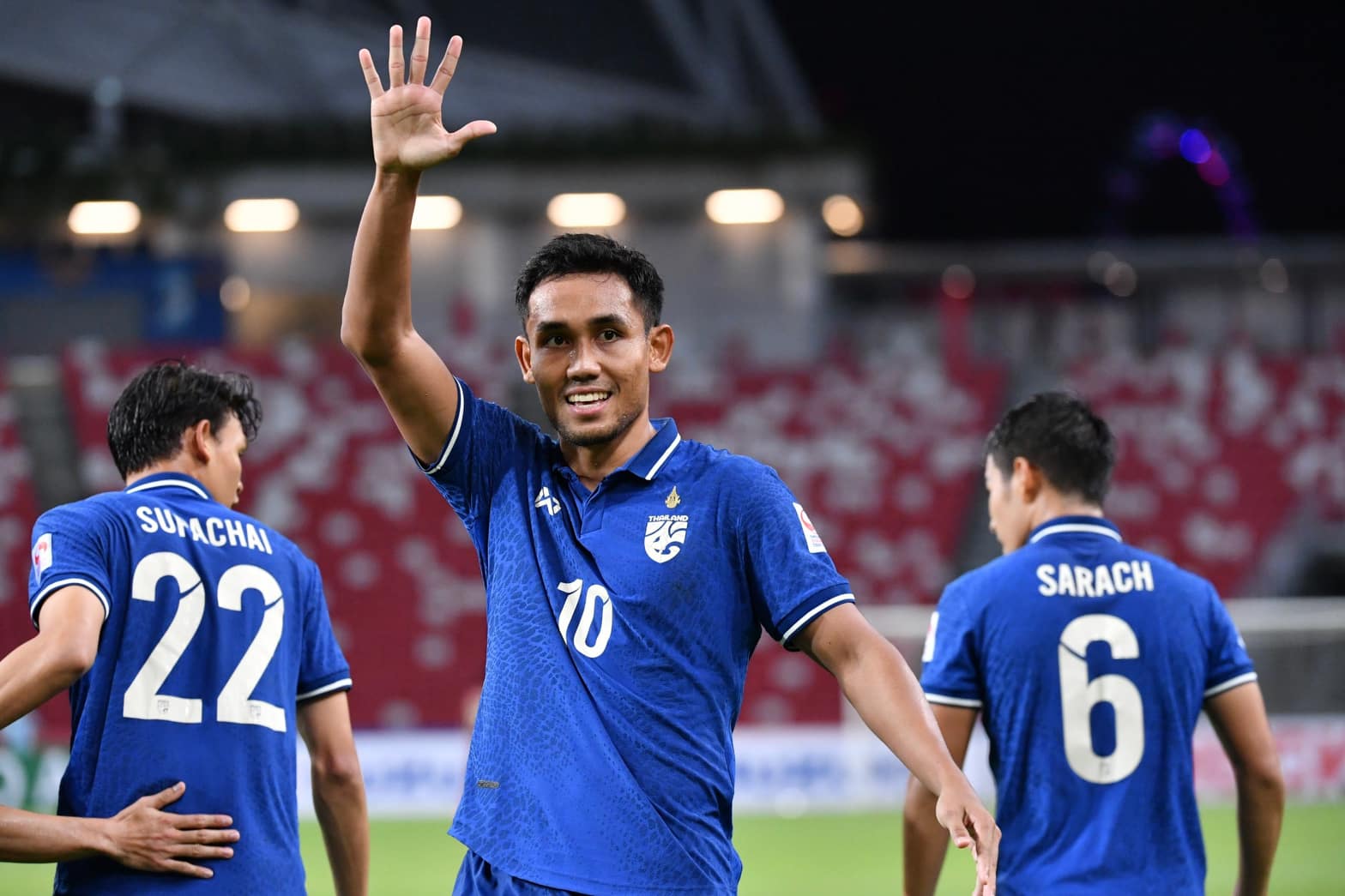 ช่วงทดเจ็บ วรชิต กนิตศรีบำเพ็ญ แอสซิสต์ คืนให้ สุภโชค สารชาติยิงเข้าไปเป็นประตูที่สองของตัวเองในทัวร์นาเมนต์นี้และทำให้ ทีมชาติไทยเอาชนะ เมียนมาไป 4-0 มีเพิ่มเป็น 6 แต้มเท่ากับสิงคโปร์ แต่ประตูได้เสียดีกว่าเลยแซงขึ้นไปเป็นจ่าฝูงของกลุ่มทันที