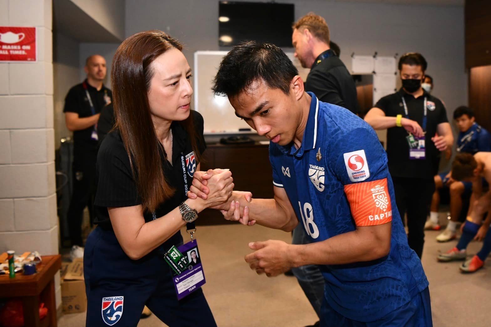 ด้าน “มาดามแป้ง” นวลพรรณ ล่ำซำ ผู้จัดการทีมฟุตบอลชาติไทย ออกปากชื่นชมนักเตะหลังเกมการแข่งขันทั้งศักยภาพในสนามและการควมคุมอารมณ์แม้เจอเกมหนัก โดยกล่าวว่า “เป็นการคลายล็อกความกดดันให้แป้งและทีมงานทุกคน เพราะด้วยสถิติต่างๆ ของเวียดนามที่ค่อนข้างดีกว่า แต่วันนี้เราก็ได้แสดงให้เห็นแล้วว่า เรากลับมาแล้ว ที่ต้องชื่นชมมากกว่าการโชว์ความสามารถยอดเยี่ยมในสนามแล้ว ที่อดพูดถึงไม่ได้คือทุกคนมีสติ ควบคุมอารมณ์ได้ดี แม้จะถูกเล่นแรง ถูกยั่วยุในหลายจังหวะ นี่คือสปิริตที่น่าประทับใจ”