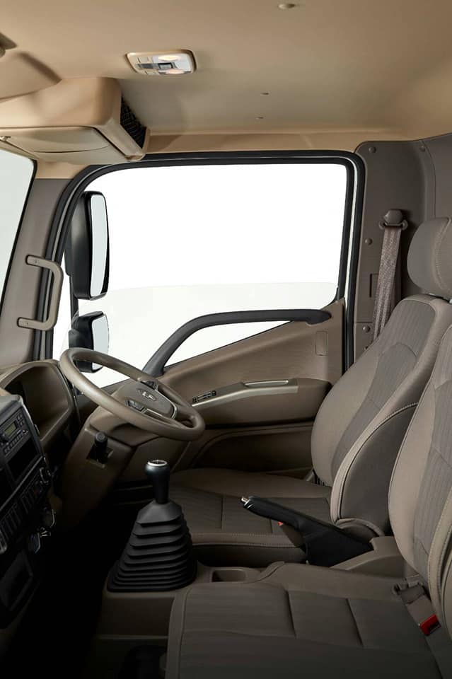 ห้องโดยสารที่ออกแบบใหม่ทั้งหมด กว้างกว่าทุกมิติ ให้ความรู้สึกเหมือนขับรถ Passenger ทั่วไป ด้วยวัสดุเกรดพรีเมี่ยม พร้อมอุปกรณ์อำนวยความสะดวกครบครัน ไม่ว่าจะเป็น กระจกไฟฟ้าระบบออโตเมติกทั้งผู้ขับและผู้โดยสาร เรือนไมล์ใหม่ พร้อมจอแสดงผลแบบ LCD ขนาดใหญ่ 3.2 นิ้ว แสดงการทำงานของเครื่องยนต์ และระบบเพื่อความปลอดภัย พวงมาลัยดีไซน์ใหม่ แบบ 4 ก้าน ทำให้ควบคุมรถได้คล่องตัวแม้ในทางแคบ ระบบเครื่องปรับอากาศใหม่หมด สะดวกสบายด้วยปุ่มปรับไฟฟ้า เย็นฉ่ำทั่วถึง พร้อมกันนี้ยังให้ความสะดวกสบายด้วยเบาะนั่งระดับพรีเมี่ยม ตัดรับเข้าสรีระสำหรับผู้ขับขี่ ช่วยลดความเมื่อล้า โดยสามารถปรับองศาการนั่งได้หลากหลาย สะดวกสบายสุดในการขึ้นลงรถด้วยประตูปรับได้ 3 ระดับที่สามารถเปิดได้กว้างสุดถึง 90 องศา และที่เหนือไปกว่านั้นคือความเงียบในห้องโดยสารที่ให้ความเงียบสุด 65dB ปิดกั้นเสียงรบกวนจากภายนอกด้วยวัสดุกันเสียง และซีลยางขอบประตูมาตรฐานยุโรป