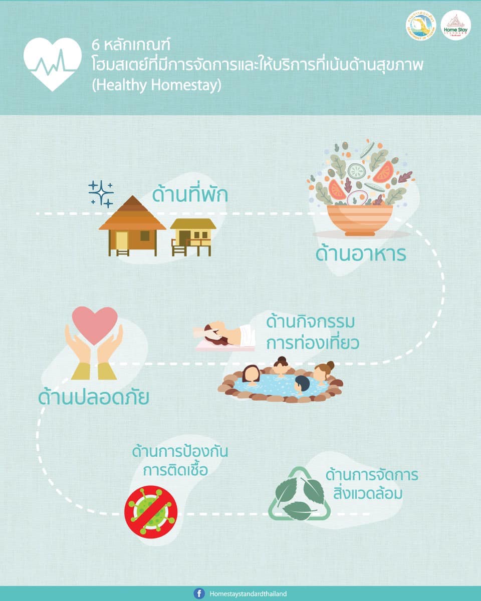 1. Healthy Homestay โฮมสเตย์ที่มีการจัดการและให้บริการที่เน้นด้านสุขภาพ หมายถึง โฮมสเตย์ ที่ได้รับมาตรฐานที่มีการจัดการและให้บริการที่เน้นด้านสุขภาพ จากภูมิปัญญาท้องถิ่นและวัฒนธรรมในรูปแบบกิจกรรมและอาหารเพื่อสุขภาพ จำนวน 27 โฮมสเตย์ ให้ผู้รักสุขภาพได้รับความสุขเต็มที่