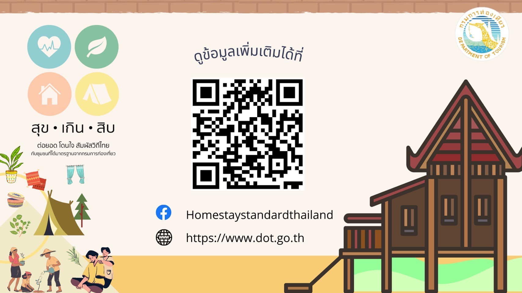 สำหรับท่านที่สนใจสามารถติดตามรายละเอียดได้ที่ www.dot.go.th หรือ Facebook Fan Page: Homestaystandardthailand หรือสแกน QR Code ด้านล่างนี้