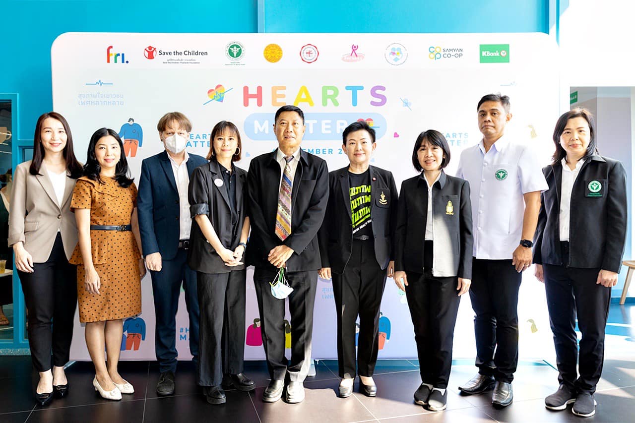 มูลนิธิช่วยเหลือเด็ก (ประเทศไทย) หรือ Save the Children (Thailand) Foundation ร่วมกับกรมสุขภาพจิต กระทรวงสาธารณสุข ได้จัดงาน ‘HEARTS MATTER: สุขภาพใจเยาวชนเพศหลากหลาย’ ขึ้น ณ สามย่าน โค-ออป เพื่อนำเสนอผลวิจัยเรื่องสุขภาพจิตในกลุ่มเยาวชนเพศหลากหลาย ที่ได้ร่วมจัดทำโดยมูลนิธิช่วยเหลือเด็ก (ประเทศไทย) มหาวิทยาลัยธรรมศาสตร์ และมหาวิทยาลัยศรีนครินทรวิโรฒ รวมถึงได้มีจัดเวทีเสวนาในหัวข้อ “อุปสรรคและการก้าวไปข้างหน้าเพื่อสุขภาพจิตที่ดีของเด็กและเยาวชนผู้มีความหลากหลายทางเพศ” โดยมีผู้ร่วมเสวนาอย่าง หมอโอ๋ - พญ.จิราภรณ์ อรุณากูร กุมารแพทย์เวชศาสตร์วัยรุ่น และคลินิกเพศหลากหลายในวัยรุ่น คณะแพทยศาสตร์ รพ.รามาธิบดี อ.สกล โสภิตอาชาศักดิ์ คณะวิทยาการเรียนรู้และศึกษาศาสตร์ มหาวิทยาลัยธรรมศาสตร์ หนึ่งในทีมวิจัย ทิพย์ - พรทิพย์ รุ่งเรือง รองประธานเครือข่ายเยาวชนชาติพันธุ์เพื่อการพัฒนา ตัวแทนเยาวชนกลุ่มผู้มีความหลากหลายทางเพศ ที่กล่าวถึงประเด็นเชิงอัตลักษณ์ทับซ้อนในบริบทชุมชนชาติพันธุ์ไร้สัญชาติ ที่ไม่มีพื้นที่ในการพูดคุยเรื่องของความหลากหลายทางเพศและสุขภาพจิต และ ดำเนินรายการโดย พญ.วิมลรัตน์ วันเพ็ญ สถาบันสุขภาพจิตเด็กและวัยรุ่นราชนครินทร์